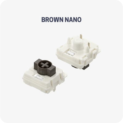 These new hot-swappable low-profile switches have been redesigned to deliver a noticeably improved typing experience. With a 3.5 mm travel distance, they offer the feel of full-height switches while maintaining a low-profile form factor.  Made from a full POM construction these switches are smooth, silent and creamy.