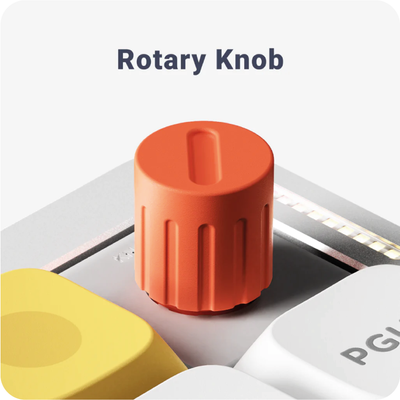 Rotary knob can be swapped in or out between 3 different options.  The knob can be customized to take on numerous functions from volume control, to zoom, bidirectional scroll and more.