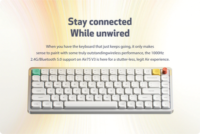 Slim and lightweight, perfect for on-the-go productivity. The Air75 V3's compact form factor and lightweight design make it an ideal companion for mobile workstations and tight desk spaces.
