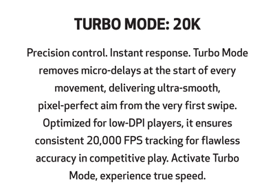 Turbo Mode eliminates micro-delays when you first start moving the mouse, enabling faster and smoother aiming from the very first pixel.