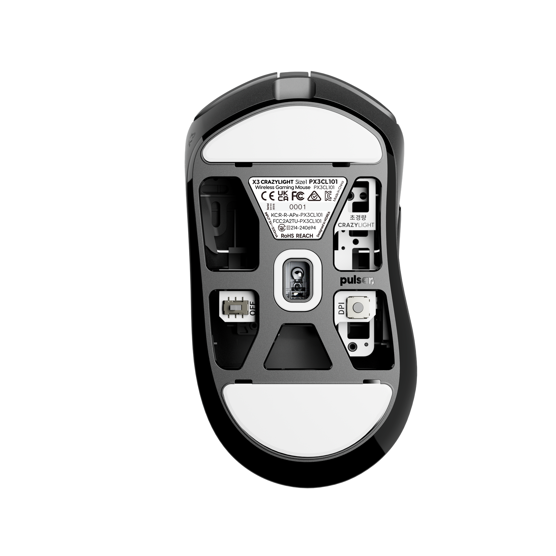 Unlike the Xlite, the click sections of the X3 CrazyLight are aligned on the same level. This design was optimized for a Palm-Claw grip, ensuring the click sections are positioned evenly for enhanced ergonomics and comfort.