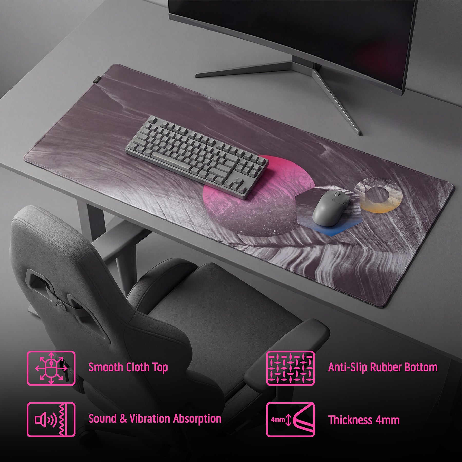 Textured rubber base will grip to all flat surfaces to ensure your desk pad is stable.