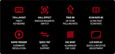 - Rapid Trigger: 0.05mm resolution for instant key reset