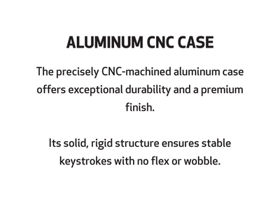 The precisely CNC-machined aluminum case offers exceptional durability and a premium finish. Its solid, rigid structure ensures stable keystrokes with no flex or wobble.'