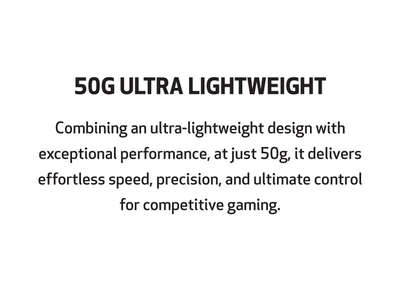 Combining an ultra-lightweight design with exceptional performance—at just 50g, it delivers effortless speed, precision, and ultimate control for competitive gaming.