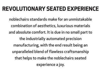 Noblechairs standards make for an unmistakable combination of aesthetics, luxurious materials and absolute comfort. It is due in no small part to the industrially automated precision manufacturing, with the end result being an unparalleled blend of flawless craftsmanship that helps to make the Noblechairs seated experience a joy.