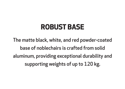 The matt black powder-coated base of our noblechairs consists of robust solid aluminium and this supports a weight of up to 120kg.