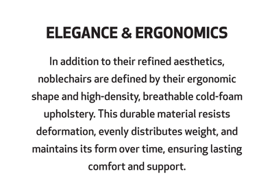 In addition to the impressive aesthetics of noblechairs, they are characterised by their distinct shape and the use of breathable, deformation-resistant breathable cold foam upholstery. It is the use of this high-density foam that helps the chair retain its shape over extended periods of time, effectively distributing the load while preventing users sinking too deeply into the upholstery.
