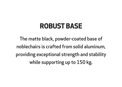 The matt black powder-coated base of noblechairs consists of robust solid aluminium and this supports a weight of up to 150kg.